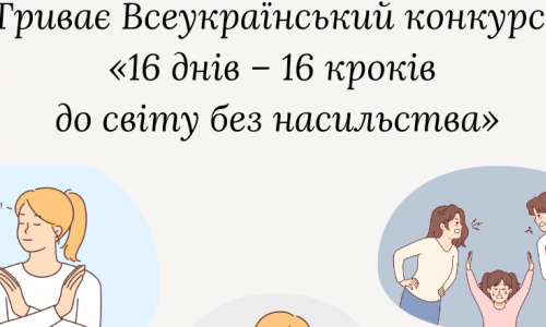 Інформаційно-просвітницький творчий конкурс для дітей віком від 15 до 17 років «16 днів – 16 кроків до світу без насильства» триває з 1 листопада по 1 грудня 2025 року.